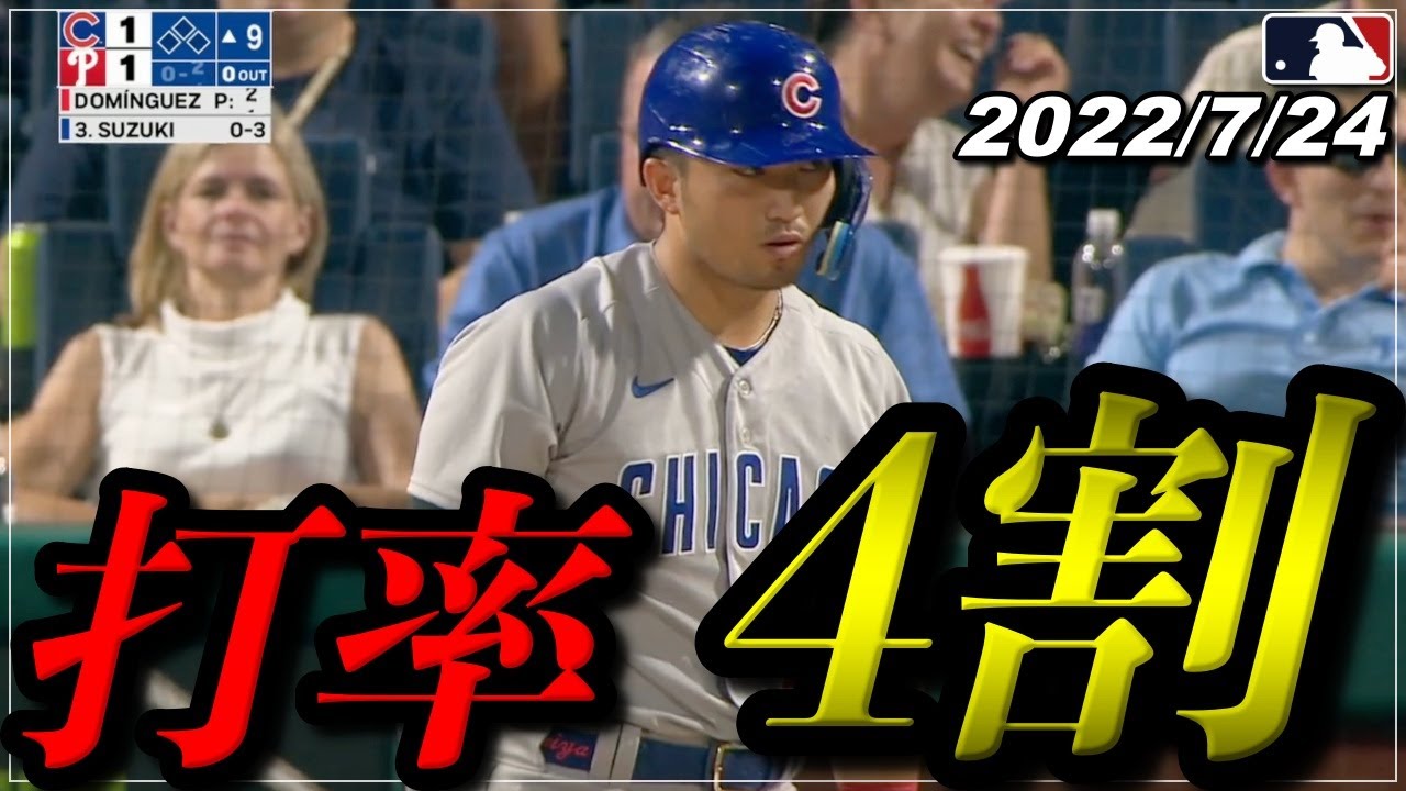 Seiya, who started in the 3rd right, had no hits in 5 at bats, and his streak stopped at 8. However, the team showed a good play in defense and won two consecutive wins! ![July 24 Seiya Suzuki Cubs]Cubs 6-2 Phillies Batting record this season , indicates the degree of contribution to the team’s score) 🔽 Recommended baseball video Latest[Seiya Suzuki]No. 7, including a 2-run home run, “Five hits with four hits” https://youtu.be/yOKRiW_S2zg ■───── ──────────────────────────────────■ Cubs Seiya Suzuki’s breaking news, exciting batting and home run , and if you want to follow skillful defense, please subscribe to the channel 🇯🇵 → https://www.youtube.com/channel/UCfjqmFRo5oM-mNpTYJn6J3w Always support positively! !Sayyaman 💪🏻 ■────────────────────────────────────────■ Production of character icon for YouTube channel Mr. MOUMOU, an illustrator who did it ↓ https://twitter.com/ushisanteam Free BGM in the video DOVA-SYNDROME ↓ https://dova-s.jp/ *This video is managed by MLB Advanced Media by ContentID #major league #baseball #seiya suzuki