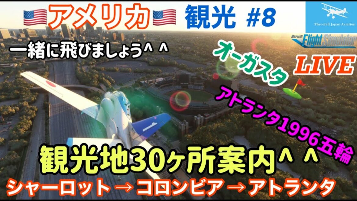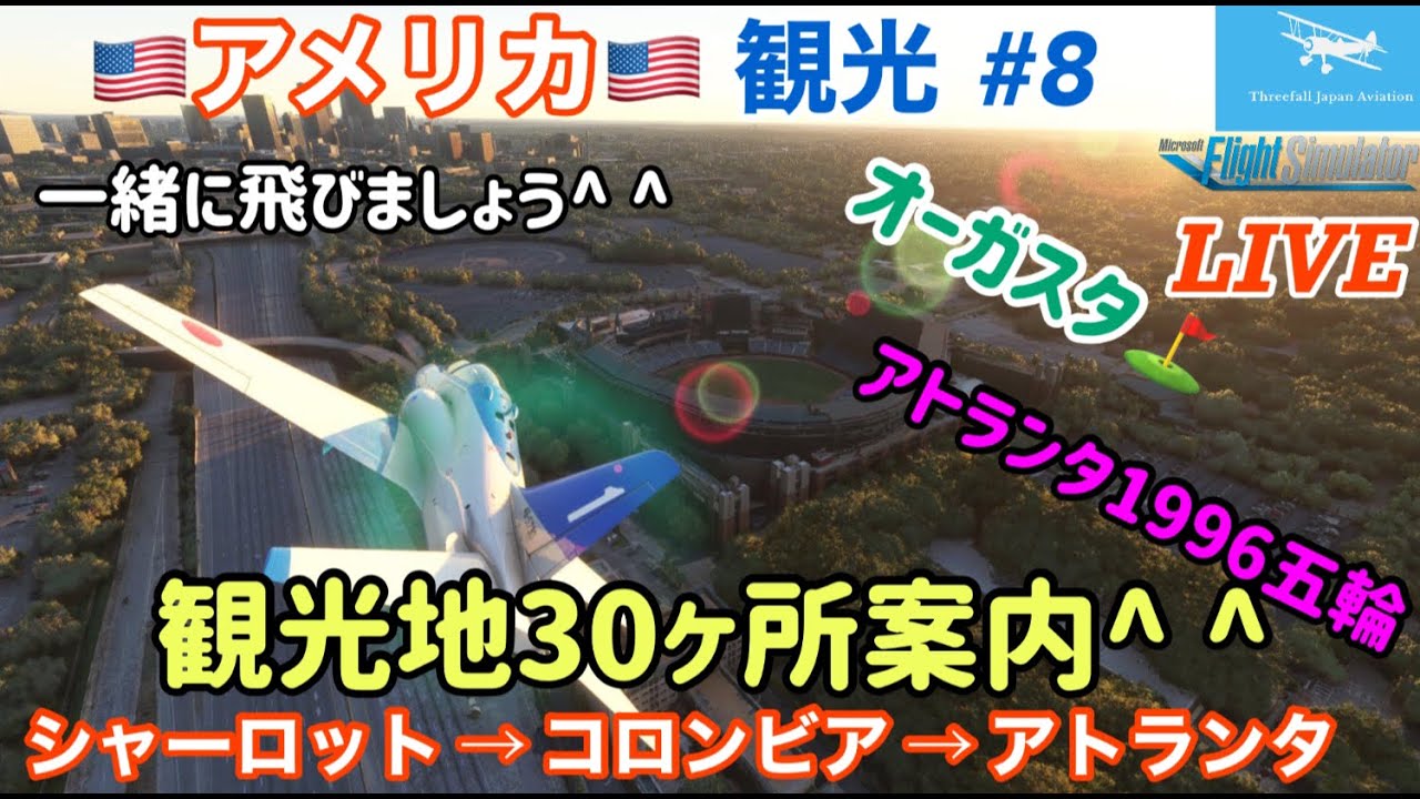 [Live distribution]Information on 25 famous places (Atlanta 1996 Olympic Games, etc.)! Sightseeing in 50 US states (# 8) ☆ Charlotte → Colombia → Augusta → Atlanta ☆ Former F-15 pilot[MSFS2020]