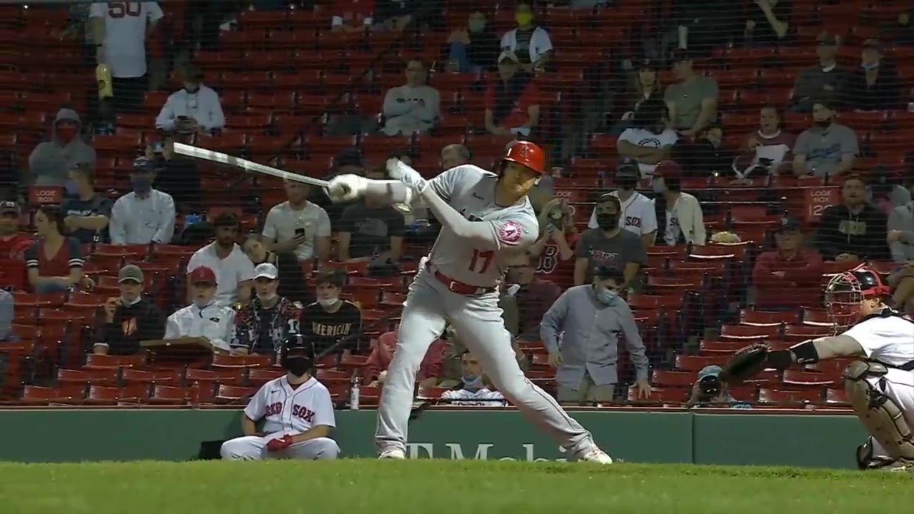 Shohei Ohtani flicks a ball over the green monster for his 11th home run on the season