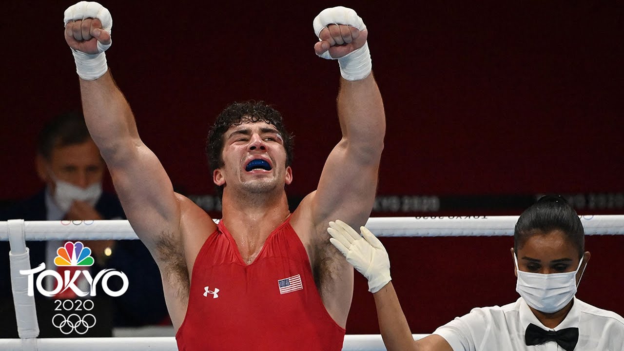 USA’s Richard Torrez Jr. staggered and bloodied Kamshybek Kunkabayev of Kazakhstan to advance to the men’s super heavyweight title bout. #NBCOlympics #Tokyo2020 #Boxing