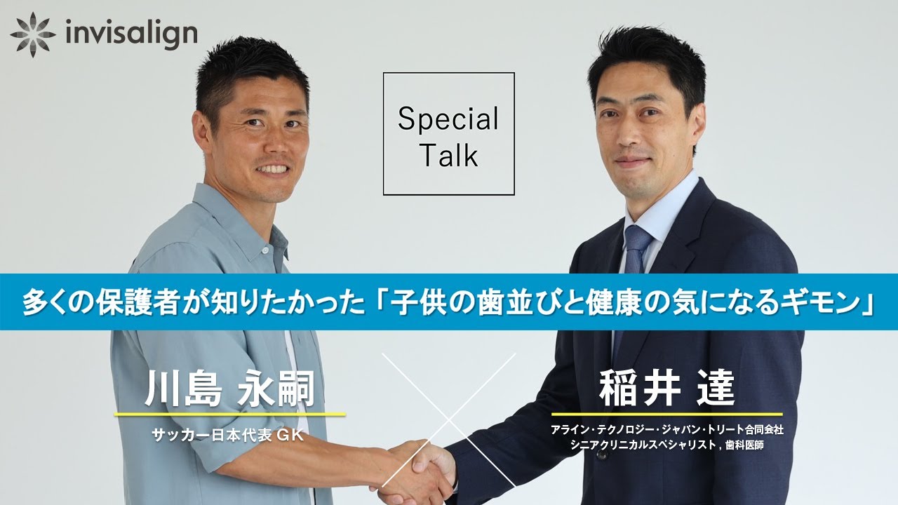 Special content for parents to deepen their knowledge of children’s orthodontics and children’s teeth and health. ↓ See also Sakaiku article ↓ https://www.sakaiku.jp/column/health/2022/015958.html 00:00 1. Opening movie 00:39 2. The importance of Kawashima’s teeth alignment/teeth engagement 03:15 3. Children’s teeth alignment and its effect on growth 05:27 4. Causes and prevention methods for children’s teeth alignment 08:25 5. When to start orthodontic treatment for children 11:38 6. Children’s teeth Balancing orthodontics and sports / Invisalign products and features 16:17 7. Invisalign achievements / 1st stage treatment and 2nd stage treatment 20:39 8. From Eiji Kawashima As a guest, he is an active Japanese national soccer team GK and himself is 3 We invited Eiji Kawashima, a parent of a child, to attend an orthodontist and Align Technology Japan Treat LLC. A group company of the technology company) realized a dialogue with employees. Kawashima asked the orthodontist questions about children’s orthodontics, based on the differences in attitudes about orthodontics in Japan and Europe, which he himself feels after living abroad for a long time, and how sports and orthodontics in children should be. rice field. ■ Invisalign Japan Co., Ltd. HP: https://www.invisalignjapan.co.jp/ Twitter: https://twitter.com/invisalignjapan Facebook: https://www.facebook.com/InvisalignJapan/ Instagram: https:/ /www.instagram.com/invisalignjapan/?hl=en YouTube: https://www.youtube.com/channel/UCwLRrJ4woQbYhfkT_kzP5XA/featured Teeth alignment # Orthodontics # Sakaiku # Boys and girls soccer # Sports boys and girls