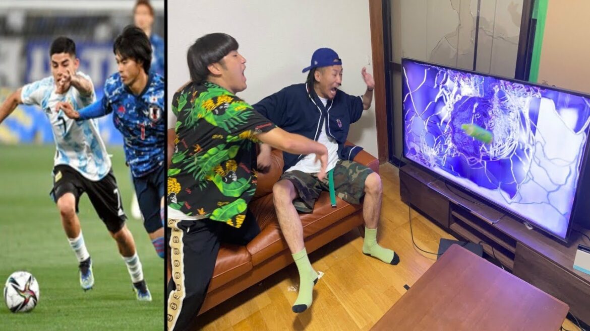 I enthusiastically crushed the TV while cheering for the Olympics at my friend’s house[Candid camera]