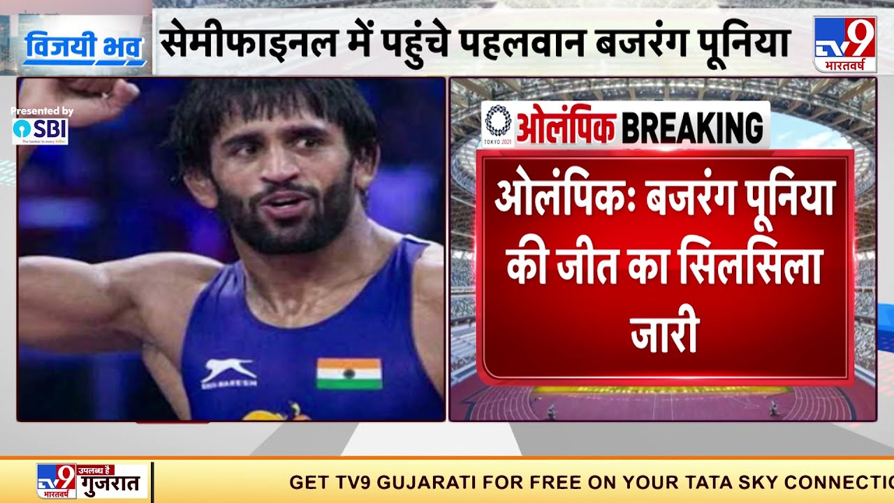 On the wrestling mat of Tokyo Olympics, India’s most domineering wrestler Bajrang Punia has taken two steps towards becoming a Sultan. He defeated the Iranian wrestler in 5 minutes in the quarter-finals of free-style wrestling in the men’s 65 kg category. Bajrang won this match by dropping the Iranian wrestler on the mat. With this, he has reached the semi-finals of this event. Earlier in the pre-quarterfinals, he defeated Kyrgyz wrestler Arnazar. In that Bajrang won on the basis of the best move as the match ended in 3-3 draw. #BajrangPuniaWrestler #INDVsIran #TokyoOlympics2020 Credit: #National | #ShubhankarMishra | #TV9 For Latest news visit | https://www.tv9hindi.com/ Subscribe to TV9 Bharatvarsh https://goo.gl/udchcy Follow TV9 Bharatvarsh on Facebook | https://www.facebook.com/TV9Bharatvarsh/ Follow TV9 Bharatvarsh on Twitter | https://twitter.com/TV9Bharatvarsh Watch more TV9 Bharatvarsh Videos | https://www.tv9hindi.com/videos Know All About Political News | https://www.tv9hindi.com/india Know All About Trending News| https://www.tv9hindi.com/trending Know All about Business news | https://www.tv9hindi.com/business Know All about Latest Bollywood News| https://www.tv9hindi.com/entertainment #TV9Bharatvarsh #HindiNewsLive .