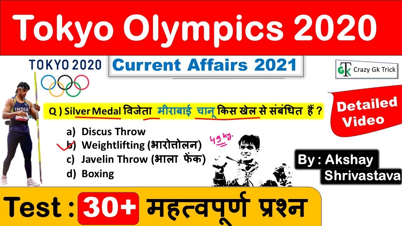 Olympics Current Affairs | Tokyo Olympic important questions | Gk Quiz | Olympic Quiz | Sports Current Affairs 2021 | Olympic current affairs 2020 | Olympic current affairs india | India in Olympics 2020 | Neeraj Chopra Olympic | Current affairs 2021 | Important current affairs 2021 | टोक्यो ओलंपिक 2020 | Current affairs 2021| Most Important Current affairs in Hindi | current affairs india | Current affairs Quiz | latest current affairs Quiz | Most Important current affairs | करंट अफेयर्स | crazygktrick current affairs | current affairs