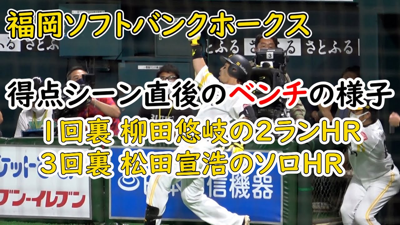 2021 Fukuoka Softbank Hawks x Hokkaido Nippon-Ham Fighters The state of the bench immediately after the scoring scene of Fukuoka Softbank Hawks in the first game after the Olympic Games, a local image. Bottom of the 1st Yuki Yanagita’s 2 run HR Bottom of the 3rd Nobuhiro Matsuda’s solo HR.
