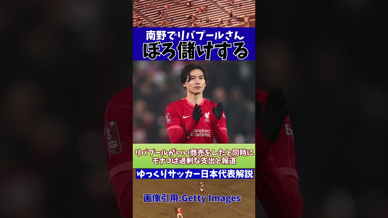 This time, Liverpool sold Monaco’s Takumi Minamino from the Japanese national soccer team at the perfect time… There’s a typo… Create → Make money (´;ω;`) Wow This channel posts videos related to the Japanese national soccer team. (≧▽≦) This channel is dedicated to the Japan national soccer team. It deals only with topics related to the Japanese National Soccer Team. Subscribe to the channel here↓ https://www.youtube.com/channel/UCWQmkClgkX93b8RtHTd8fQw?sub_confirmation =1 Slow soccer commentary↓ https://www.youtube.com/channel/UCuOFYniKoNFUqrEemWj9gEQ?sub_confirmation=1 Yuku Saka short↓ https://www.youtube.com/channel/UCDBvag665fI9DDcwRupF1-A?sub_confirmation=1 Yuku Saka (AIVOICE) )↓ https://www.youtube.com/channel/UCg7u_jqbZFTjCkEnoxiZogg?sub_confirmation=1 Yukusaka (ChatGPT)↓ https://www.youtube.com/channel/UCnIRNe-n7sLOTBqBgIkqJ9A?sub_confirmation=1 Borrowed materials Slowly standing picture: Kitsune-sama Irasutoya ↓ https://www.irasutoya.com/ I use no more than 20 images, and they are used only to assist in the explanation. Also, I try not to use it when there is a possibility that the image may be damaged by slightly offensive commentary. Illustration AC ↓ https://www.ac-illust.com/ We use free BGM. Dear DOVA-SYNDROME ↓ https://dova-s.jp/ Niconi Commons ↓ (images etc. are also used) https://commons.nicovideo.jp/ Fun and light/Mr. Yuki ↓ https:/ /dova-s.jp/bgm/play2886.html Swish Honey Lemon 350ml/Sharou-sama↓ https://dova-s.jp/bgm/play14640.html Stray Cat Aimed for Space/Sharou-sama↓ https://dova-s.jp/bgm/play2873.html #Japan national soccer team #slow commentary #Takumi Minamino