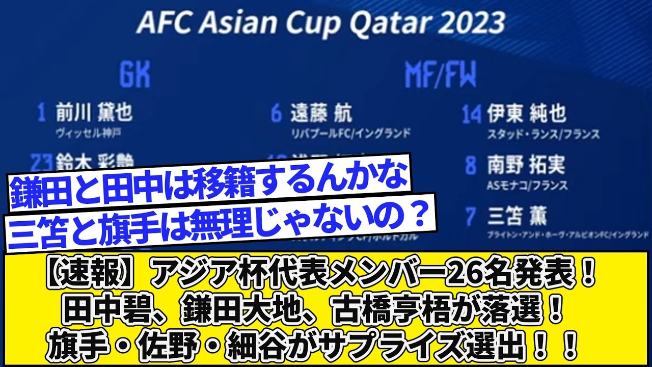 ![[Breaking News]26 Asian Cup representative members announced! Aoi Tanaka, Daichi Kamata, and Kogo Furuhashi are defeated! Hatate, Sano, and Hosoya are surprise selections! ! [Breaking News]26 Asian Cup representative members announced! Aoi Tanaka, Daichi Kamata, and Kogo Furuhashi are defeated! Hatate, Sano, and Hosoya are surprise selections! !](https://www.jp2021.com/wp-content/uploads/2024/01/1704242165_maxresdefault-1170x658.jpg)