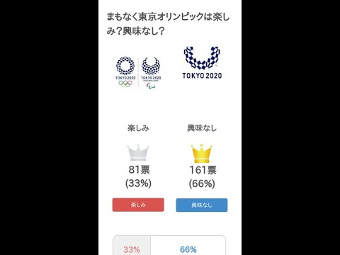 The voting page is here↓ https://tohyotalk.com/question/29981 #Are you looking forward to the #Tokyo Olympics soon? #Not interested? These are the voting results for the theme.・Excerpt from comments Even the people involved in the Olympics are so stingy that they think they should be canceled. The Olympics should be canceled immediately. It’s a precious Olympics being held in Japan, and it’s a sporting event that should definitely be a success. I hope that the number of athletes will increase in the future by taking advantage of the Tokyo Olympics.It’s a big stage for real sports without fakes like Yuzuru Hanyu, so it’s natural for Japanese people to spend too much money on fun, but adults aren’t looking forward to it either. Even if they held the Tokyo Olympics, they wouldn’t make any money because there would be so many disasters and the cost of reconstruction support would be high, and I don’t think it would make Japan as a whole happy.I don’t really have any interest in it, so I want them to cancel it. I want the right to evacuate from. I really want the Olympics to be canceled.I have no interest in it, but I’m worried about earthquakes, typhoons, and extreme heat. It would be crazy to hold the Olympics in Japan this summer. There will be deaths. I’ll make a prediction. In particular, I think it would be better to remove the marathon as an event rather than doing it in Sapporo. It seems that the decision has been made in Sapporo. It’s definitely not the Tokyo Olympics anymore. I want the name to be changed to the Tokyo-Sapporo Olympics. I don’t care about physical education, just put more effort into things like the Mathematics and Physics Olympics, the AI Olympics, the Programming Olympics, etc. The last Tokyo Olympics were a symbol of Japan’s recovery. This year’s Tokyo Olympics will be a final tribute to our predecessors who supported the recovery. After that, it’s up to us whether or not Japan will host the Olympics. It may never be held again.Whenever I’m at the Olympics, I watch Takizawa Kabuki, so I don’t think I’ll see anything other than skateboarding at the Olympics. Are you talking about 100m in 9 seconds? My cat can run 100m in 7 seconds. Isn’t it better to compete in things that only humans can do than compete in things that only humans can do? There is only pessimism. I’m really looking forward to seeing what happens! I get nervous thinking that the long-awaited Olympic and Paralympic Games will be held in Japan!I wonder if I enjoyed it until Athens, but now I’m not interested at all.