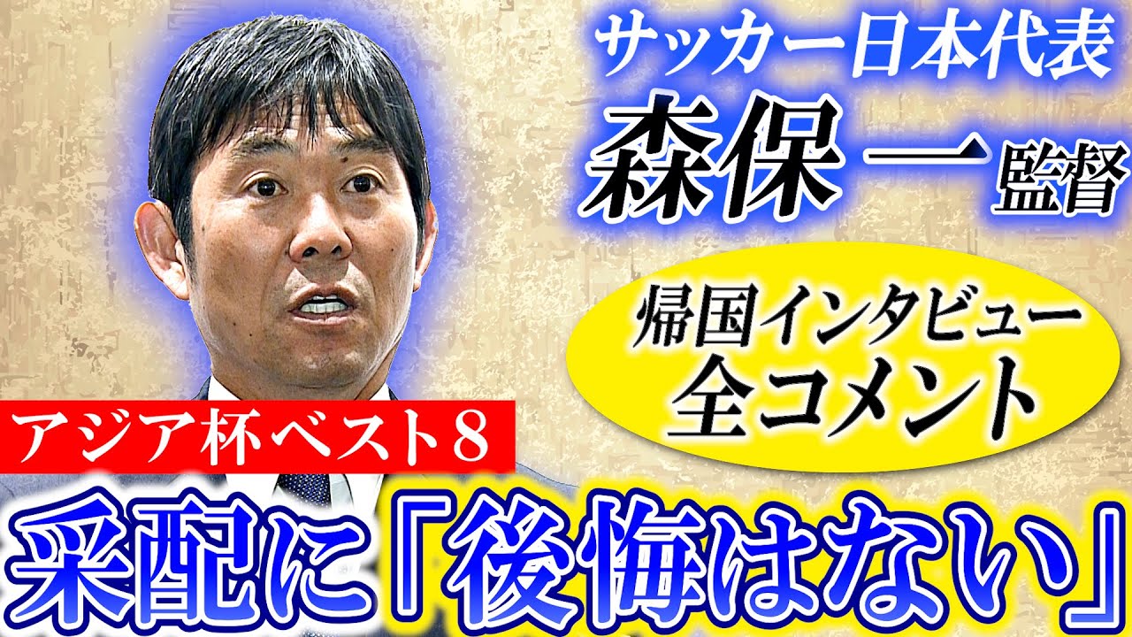 0:00 ~ Coach Hajime Moriyasu of the Japanese national soccer team returns home after the Asian Cup 0:20 ~ Responds to interviews after returning home: “Results are everything.” “As a coach, I feel disappointed.” 1:16 ~ Intention of not fixing the starting lineup 1:55 – The defender was hit in the back, “It’s not just the defense’s fault.” 2:20 – Midfielder Hidemasa Morita’s statement: “We conveyed the concept to the players, but we couldn’t find a breakthrough.” 4: 20 ~Regarding the comment that “we lost because we couldn’t make good substitution cards” 5:38~★ “I regret it, but I have no regrets” “I also accept the evaluation” 6:32 ~ Regarding the appointment of players for the World Cup Asian Qualifiers in March 7:07 – Regarding Takumi Minamino, who participated in the match immediately after the Asian Cup, 9:09 – “Director’s dismissal” is trending on SNS, “I will take this seriously” 10:05 – Regarding JFA President Kozo Tajima’s “statement to continue his role” He answered questions from reporters at the airport. He said, “I have regrets, but no regrets,” and that he had made the best possible arrangements at that moment. Regarding his departure, he commented, “I am always prepared.” He said he will continue to do his best for the team, players, and Japan. ◇“Nippon TV Sports” YouTube is delivering “must-see information for sports lovers”! Please subscribe to the channel. https://www.youtube.com/channel/UCWt0yfrBaUk148rxaOp4b4w/featured ◇Click here for various SNS of “Nippon TV Sports” ▶TikTok: https://www.tiktok.com/@ntv.sports ▶Instagram: https:// www.instagram.com/ntv_sports_/ ▶X (old Twitter): https://twitter.com/ntv_sports_jp #Japan national soccer team #Hajime Moriyasu #Coach Moriyasu #Asia Cup #Takumi Minamino #Hidemasa Morita #Nippon TV Sports