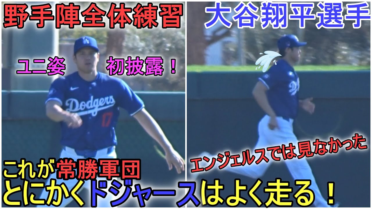 Shohei Otani making his first appearance in uniform. During general practice, he warmed up, stretched, and ran among the fielders. Just run, run, run Dodgers! ~6th day of camp~ @shinsukehandyman #Shohei Otani #shoheiohtani #dodgers