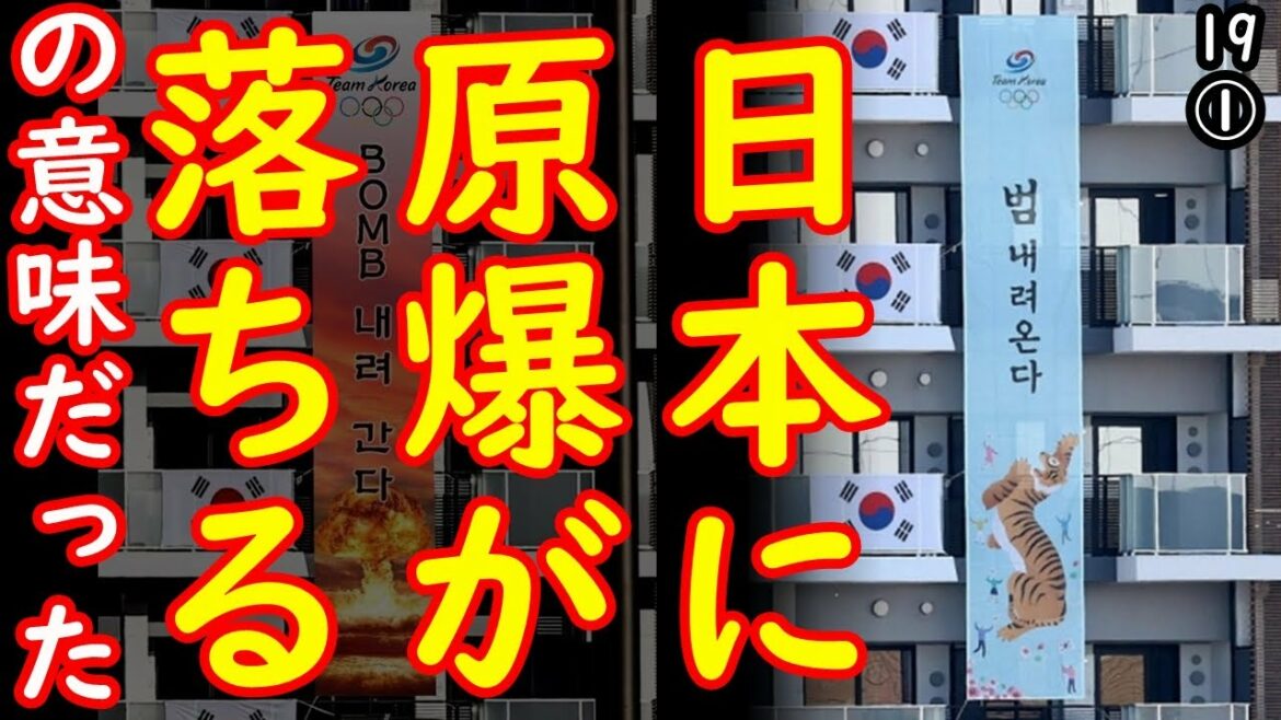 ![The Korean Olympic Village banner at the Tokyo Olympics meant “the atomic bomb will fall on Japan”![Edogawa media lab HUB # Korea reaction]# Tokyo Olympics # Olympics # Paralympics](https://www.jp2021.com/wp-content/uploads/2021/08/1629330903_maxresdefault-1170x658.jpg)